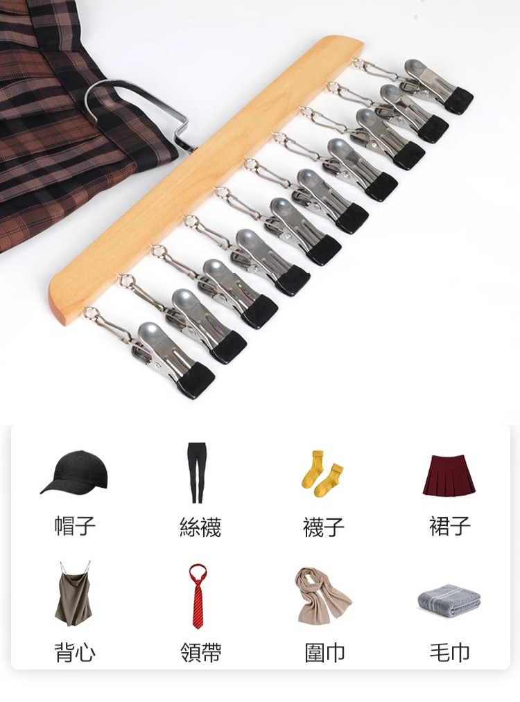 實木一字型附夾衣架